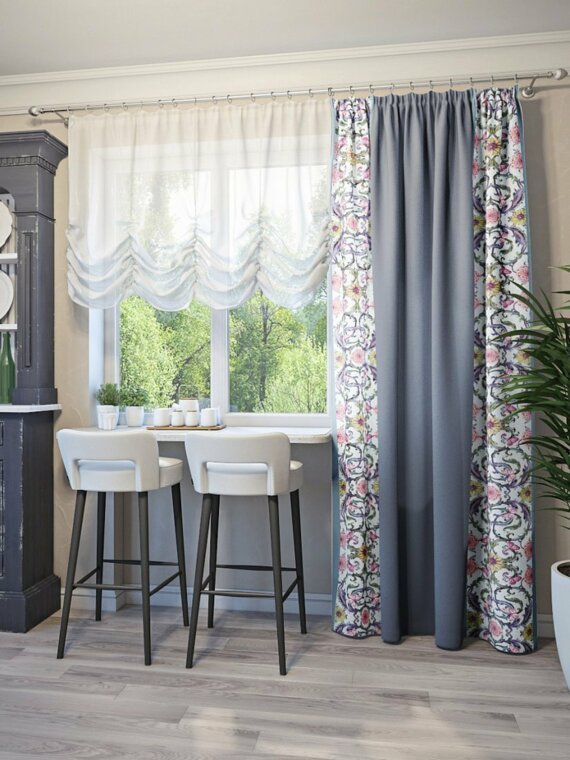 Австрийская штора лён кашемир серый, карниз верёвочный
