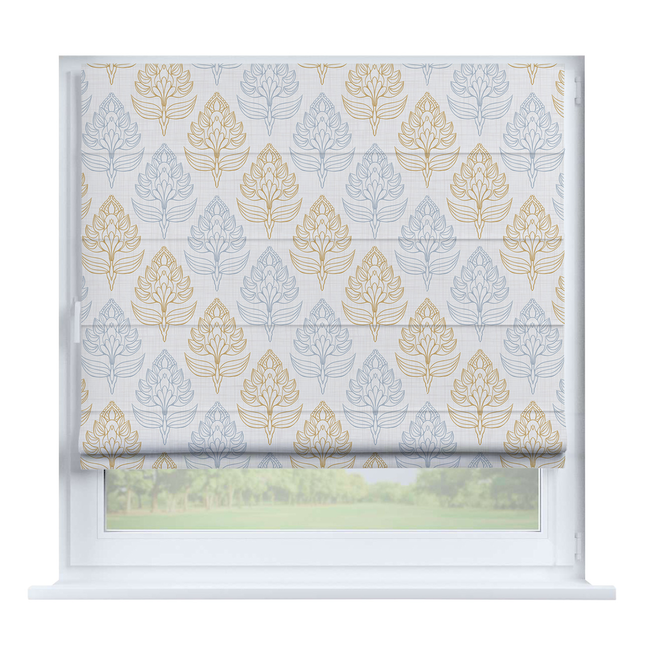 Римская штора на створку канвас горчица, карниз верёвочный