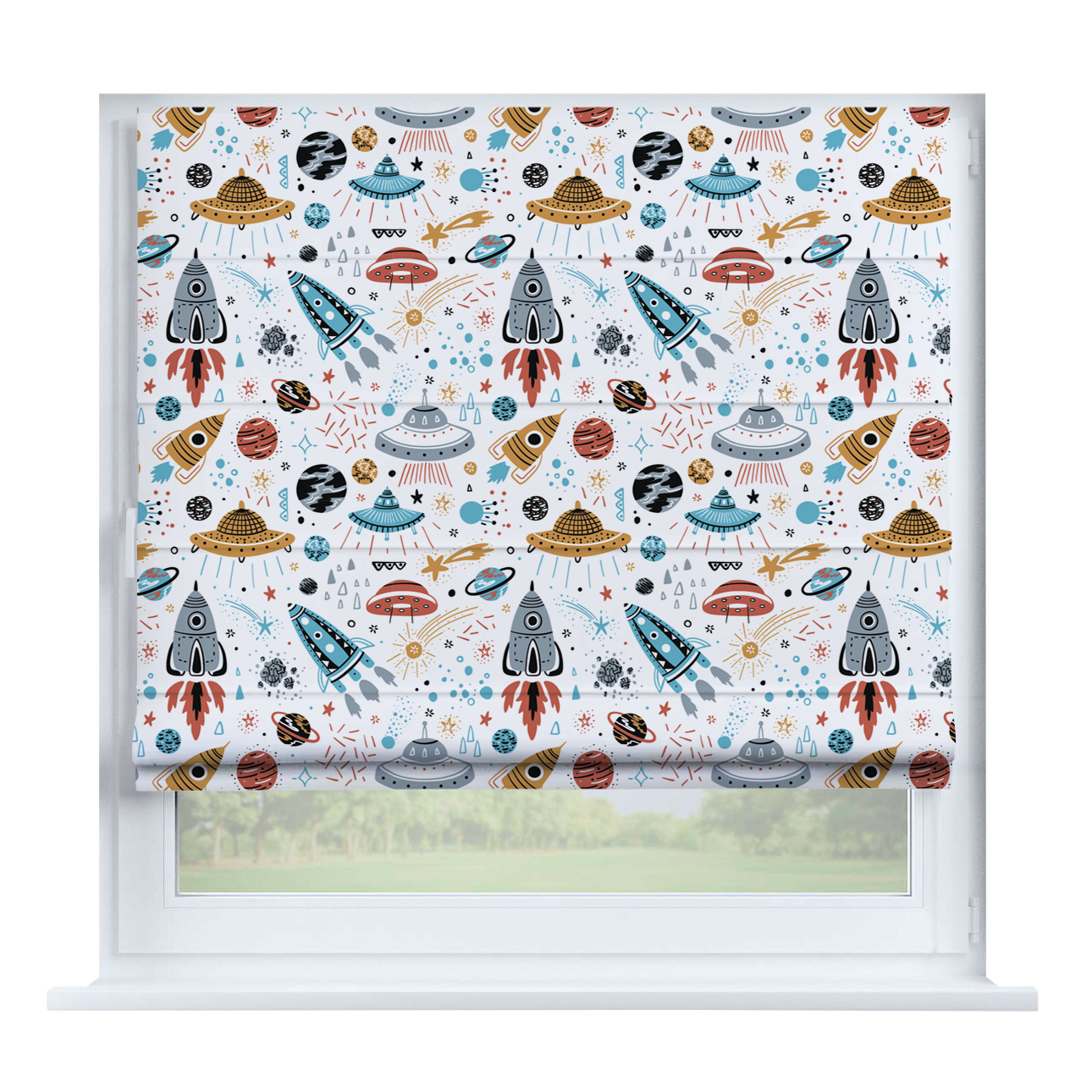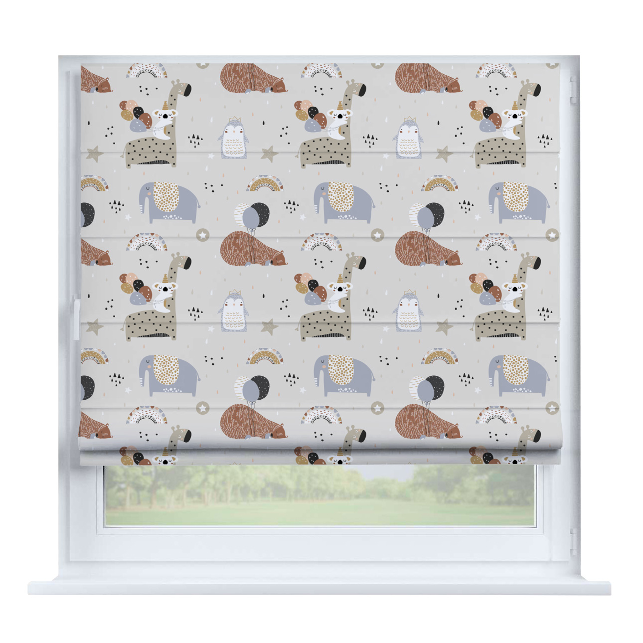Римская штора на створку «Забавные детали», карниз верёвочный