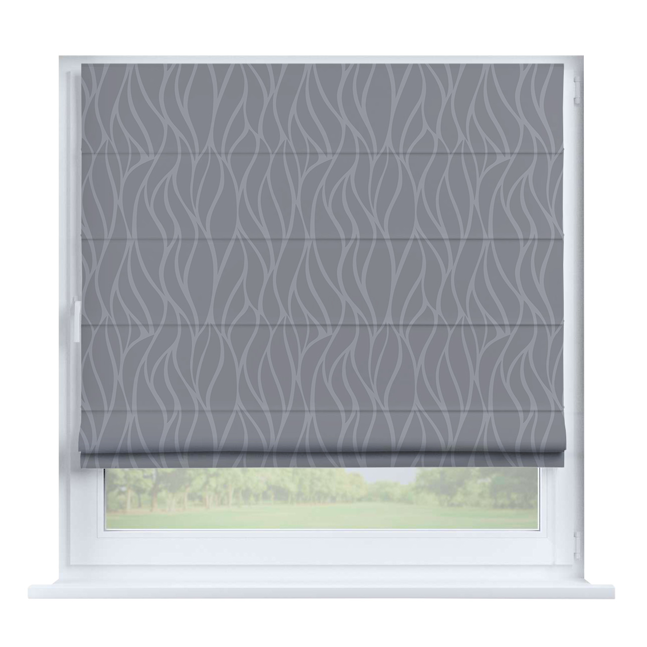 Римская штора на створку блэкаут с блеском тёмно-серый, карниз верёвочный